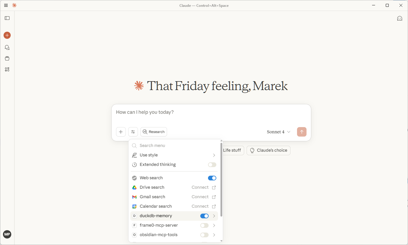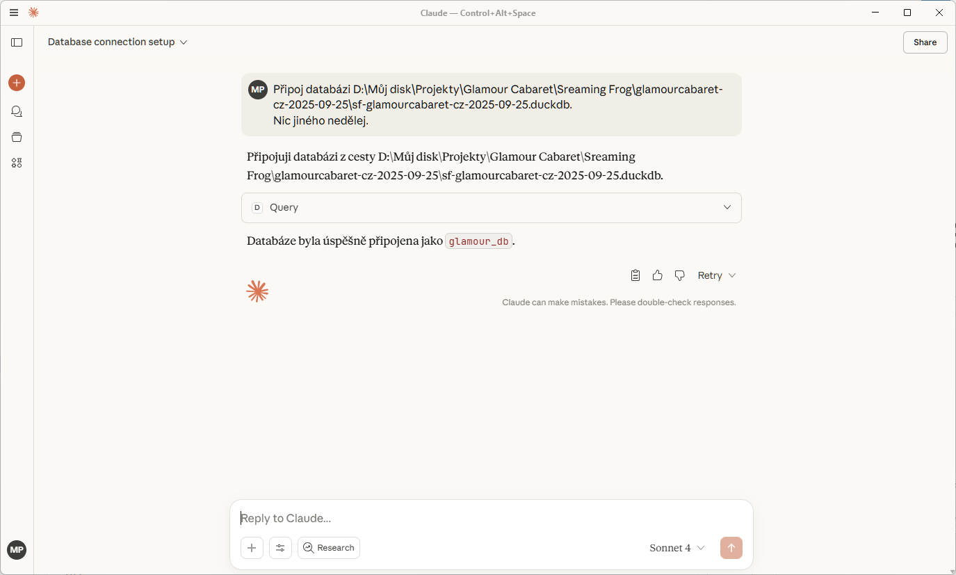 Na základě článku https://motherduck.com/blog/faster-data-pipelines-with-mcp-duckdb-ai/ bych si chtěl zprovoznit MCP server, přes který bych se mohl dotazovat na lokálně uložená data v DuckDb databázi. Pro dotazování použiju Claude Destop. Pomůžeš mi to zprovoznit?