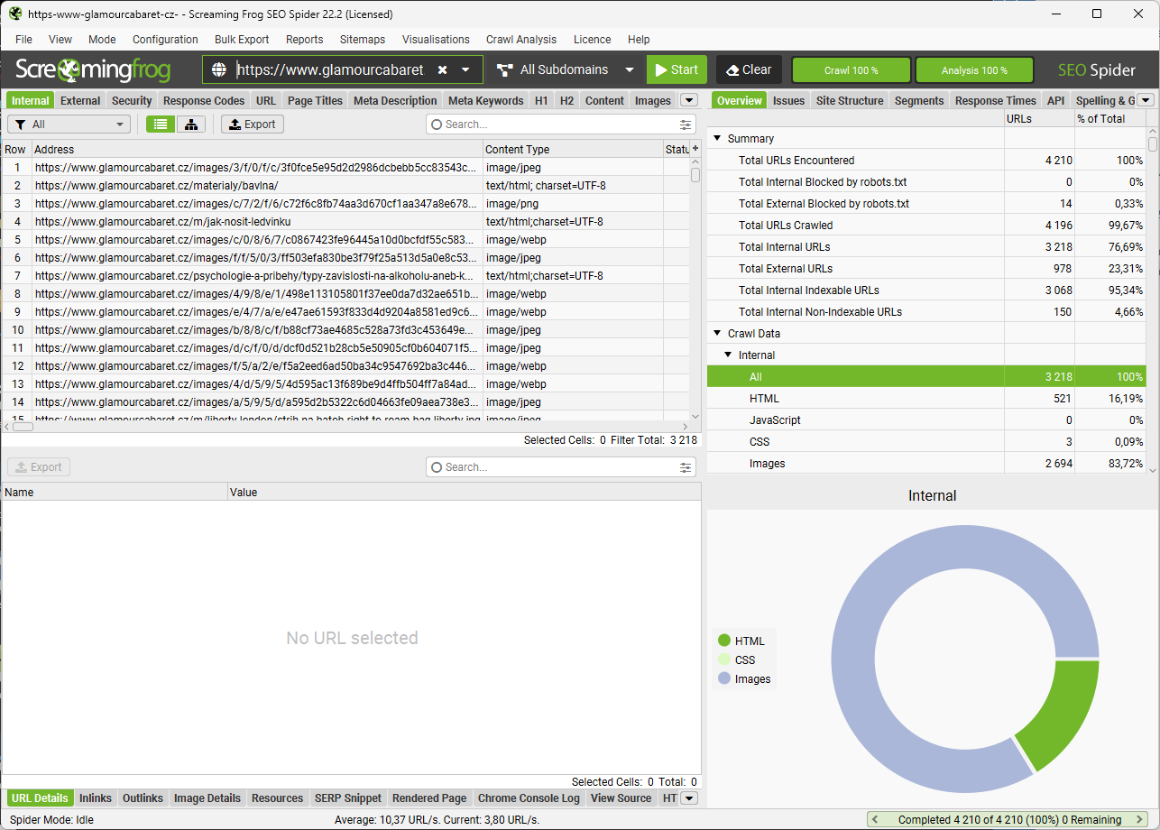 SEO workflow pro obří crawly Screaming Frogem